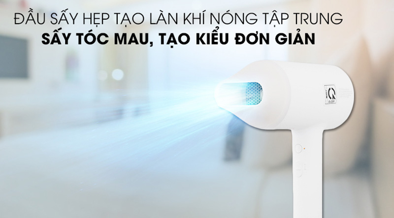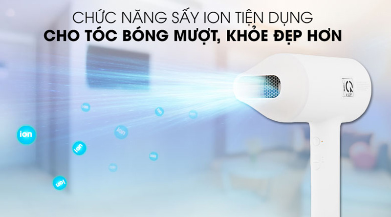 Các ion thấm sâu vào tóc và tạo ra lượng khí ở đầu ra 1.6m3/phút, loại bỏ hiện tượng tĩnh điện. Từ đó, Mi Ionic Hair Dryer EU chăm sóc và duỗi thẳng các biểu bì mang lại mái tóc mềm mại và suôn mượt.