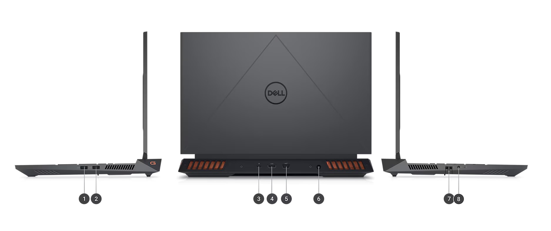 Khi nói đến kết nối và cổng, Dell G15 5530 không làm người dùng phải thất vọng khi nó sở hữu các tùy chọn kết nối như HDMI, DisplayPort và cổng sạc được đặt ở phía sau. Những thứ như cổng LAN, giắc cắm tai nghe 3.5 mm và một vài cổng USB-A cũng được nhà sản xuất trang bị ở hai bên, giúp nó dễ dàng kết nối với các thiết bị ngoại vi.