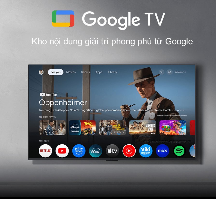 Với nền tảng Google TV™ thông minh, chiếc TV này trở thành trung tâm giải trí đích thực cho cả gia đình. Hệ thống sẽ tổng hợp nội dung từ hơn 10.000 ứng dụng và dịch vụ đăng ký của bạn – từ Netflix, YouTube, Disney+, đến hàng trăm kênh truyền hình miễn phí – sau đó sắp xếp và đề xuất nội dung theo sở thích cá nhân. Nhờ vào khả năng đề xuất thông minh và hồ sơ người dùng riêng biệt, mỗi thành viên trong gia đình đều có thể tận hưởng nội dung phù hợp nhất với mình, từ trẻ nhỏ đến người lớn tuổi.