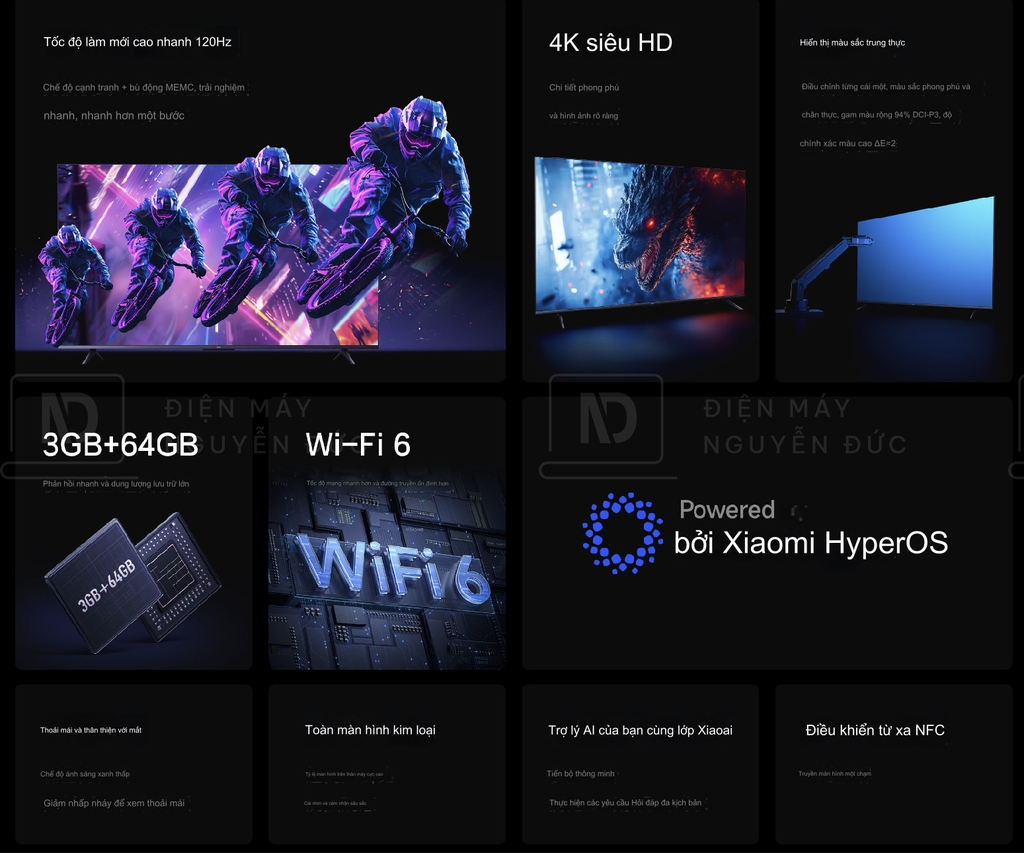 Với tần số quét lên đến 120Hz, Tivi Xiaomi A Pro 65 Inch mang lại trải nghiệm hình ảnh mượt mà, đặc biệt khi xem các nội dung chuyển động nhanh như thể thao hoặc phim hành động. Tần số quét cao giúp giảm thiểu hiện tượng nhòe hoặc giật hình, mang đến cảm giác chân thực và thoải mái hơn khi theo dõi các cảnh chuyển động phức tạp.