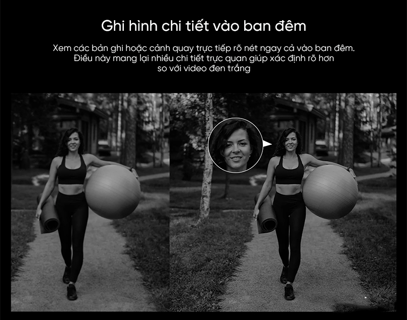 Với camera giám sát Xiaomi Imilab EC3 Pro bạn dùng có xem lại các bản ghi hoặc cảnh quay trực tiếp rõ nét ngay cả vào ban đêm, mang lại nhiều chi tiết trực quan giúp xác định người và xe tốt hơn so với video đen trắng.