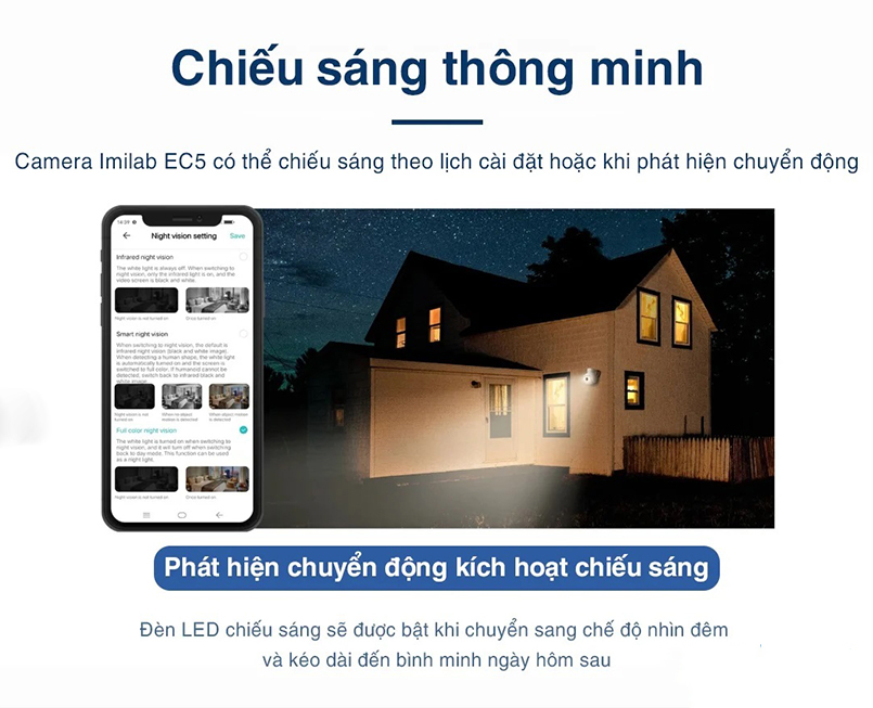 Camera ngoài trời EC5 có khả năng điều chỉnh ánh sáng dựa trên lịch trình hoặc phát hiện chuyển động trong căn nhà.