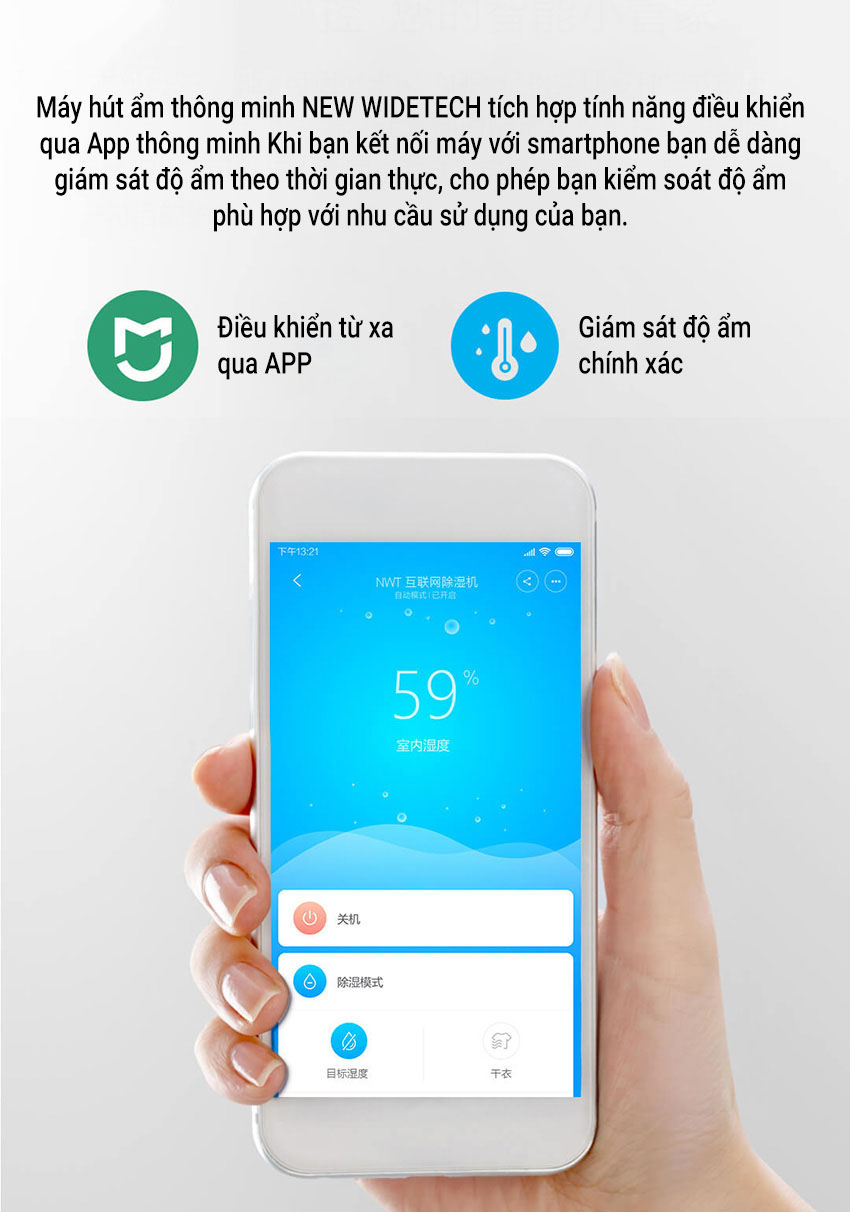 Với máy hút ẩm không khí thông minh NEW WIDETECH 12L bạn có thể dễ dàng quản lý và điều khiển máy hút ẩm từ xa ngay trên chiếc smartphone của mình nhờ vào khả năng kết nối và đồng bộ thông qua App ” Mi Home “.