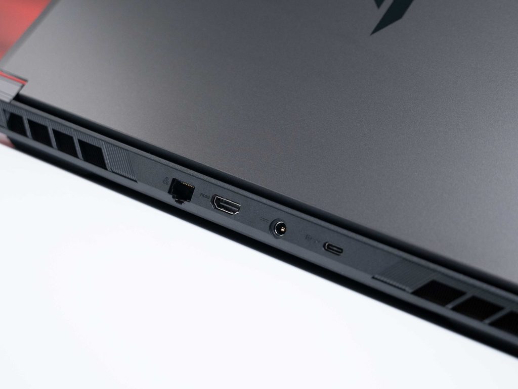 Phần khe tản nhiệt cũng được làm mới theo phong cách thanh thoát và gọn gàng hơn, vẫn giữ được tinh thần gaming mạnh mẽ nhưng kết hợp hài hòa với xu hướng thiết kế hiện đại – tạo nên một chiếc laptop vừa cá tính, vừa sang trọng.
