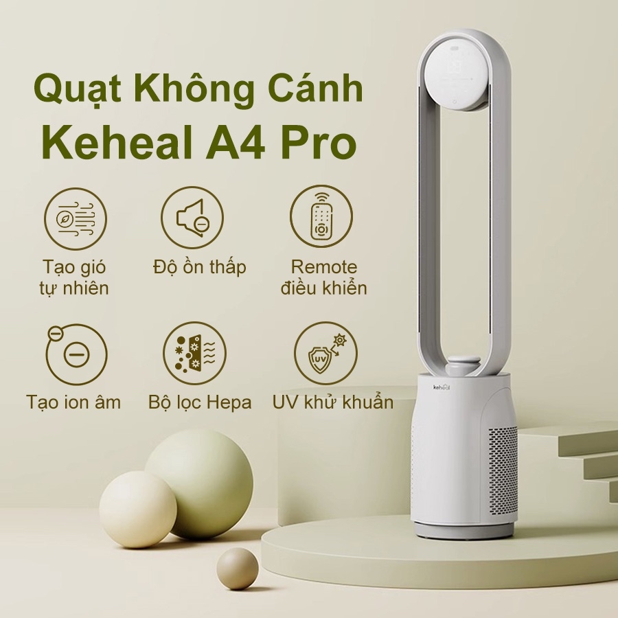 "Với thiết kế ống gió dài 550mm độc đáo và sử dụng hiệu ứng Coanda, quạt KEHEAL A4 tạo ra một luồng gió rộng, mềm mại, tương tự như gió tự nhiên. Điều này mang lại cảm giác thoải mái và dễ chịu cho người sử dụng. Quạt này thích hợp để sử dụng trong thời gian dài và đặc biệt "thân thiện" với người già, trẻ nhỏ và đặc biệt là những người có vấn đề về hô hấp như viêm mũi, dị ứng và các bệnh tương tự.