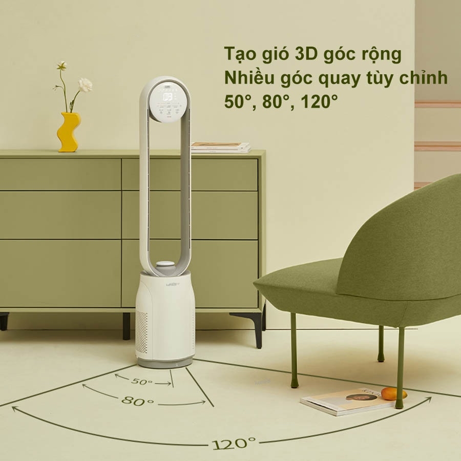 Quạt không cánh KEHEAL A4 Pro có khả năng tạo ra luồng gió với khoảng cách lên đến 10m và có 12 mức độ gió khác nhau để bạn lựa chọn. Nó cũng có 3 góc xoay tùy chỉnh: 50 độ, 80 độ và 120 độ, cho phép bạn sử dụng tối đa luồng gió theo nhu cầu. Đặc biệt, quạt KEHEAL A4 Pro không cánh có thể được sử dụng cùng với máy điều hòa để tăng cường sự lưu thông nhanh chóng của không khí lạnh, giúp cân bằng nhiệt độ phòng và phân phối không khí mát đều trong không gian căn nhà.