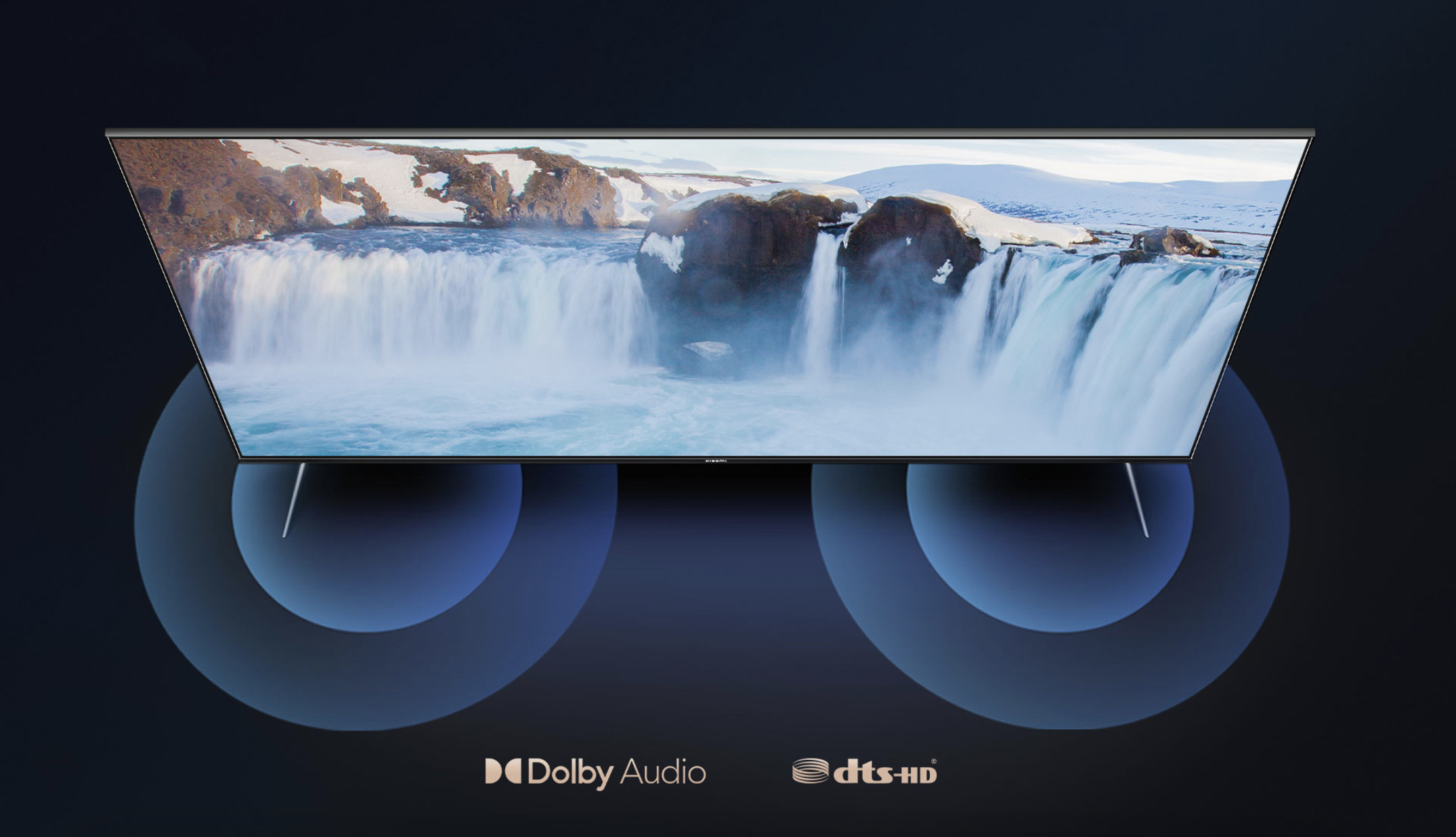 Hệ thống âm thanh bốn loa được trang bị loa tweeter và bộ phận âm trầm độc lập, đặc biệt là thiết kế tăng cường âm trầm ống dẫn, giúp hiệu suất tần số thấp của TV trở nên mạnh mẽ và mạnh mẽ hơn. Âm thanh bao quanh phòng khách như nước chảy, và xem phim nhập vai như chơi game.