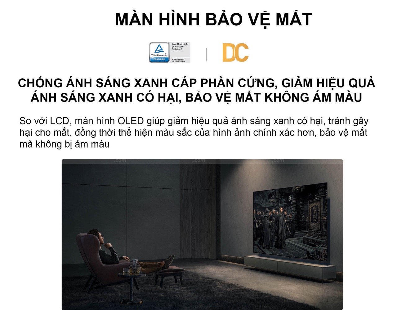 So với LCD, màn hình OLED giúp giảm hiệu quả ánh sáng xanh có hại, vừa thể hiện màu sắc hình ảnh chính xác hơn mà lại không gây hại cho mắt.
