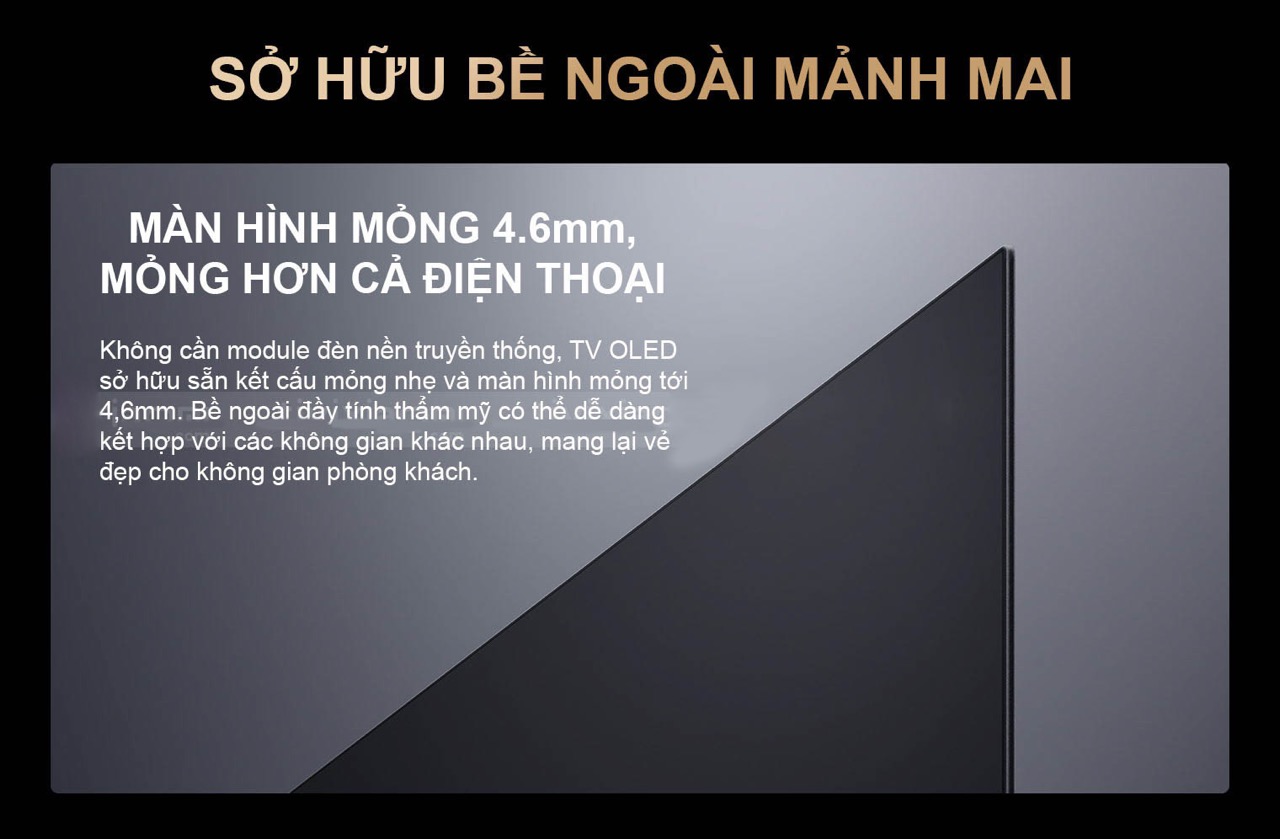 Không cần tới module đèn nền truyền thống, TV OLED đã sở hữu sẵn kết cấu mỏng nhẹ cùng màn hình mỏng tới 4,6mm giúp bạn dễ dàng kết hợp với các không gian khác nhau.