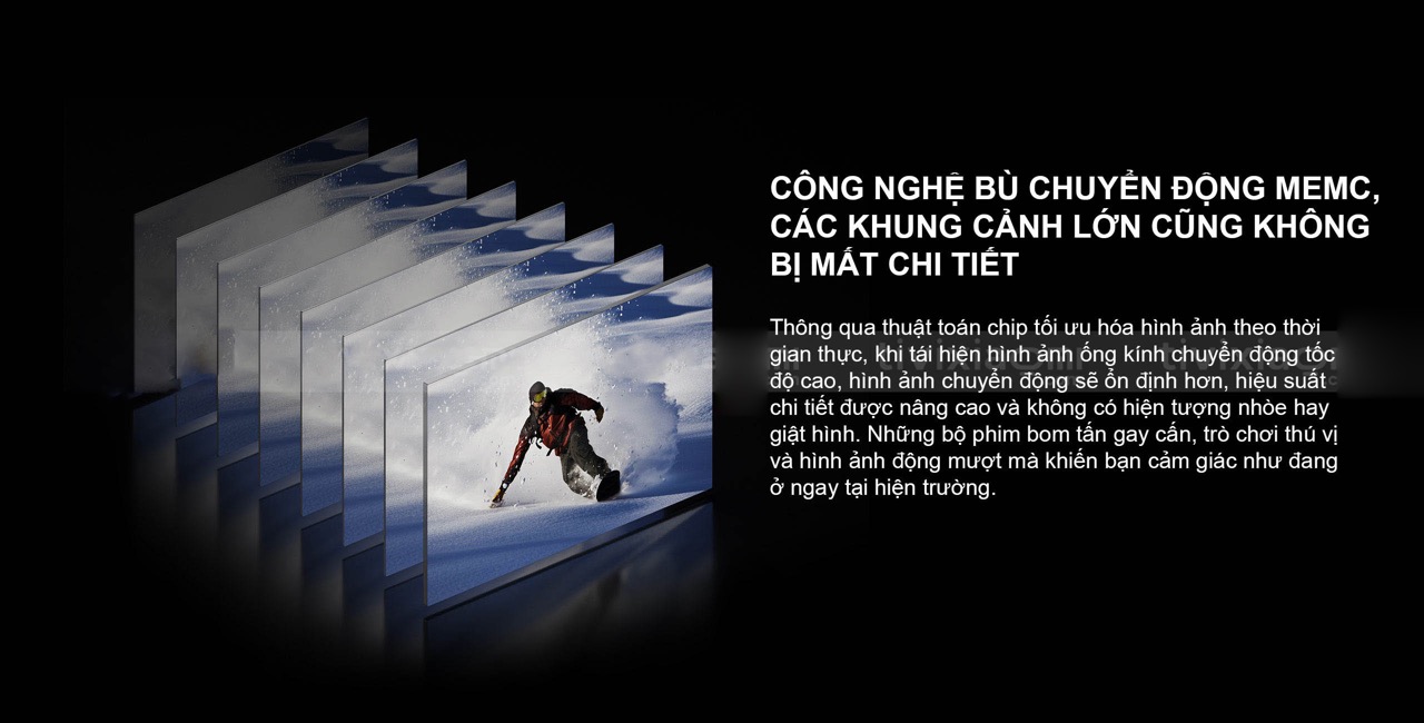 Thông qua công nghệ bù chuyển động MEMC, những hình ảnh chuyển động sẽ trở nên ổn định hơn. Giờ đây bạn không còn phải lo hình ảnh có hiện tượng nhòe hay giật hình khi trải nghiệm những bộ phim bom tấn gay cấn nữa.