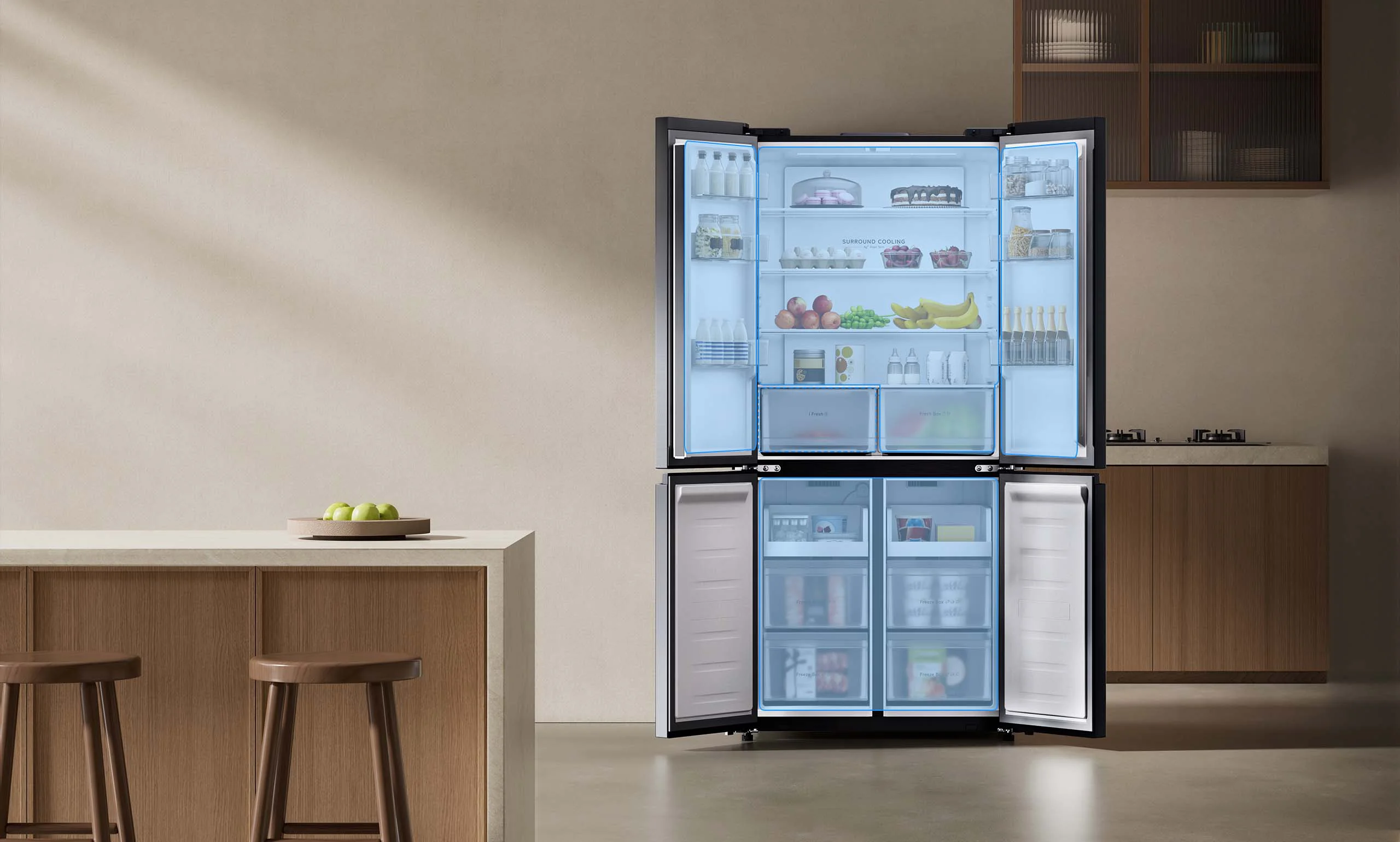 Tủ lạnh 4 cánh Xiaomi Mijia AI 510L mang đến không gian lưu trữ rộng rãi, đủ cho nhu cầu của gia đình 4–6 người.